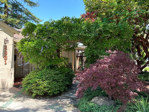 This home is well cleaned and well maintained. Surrounded by a park-like setting of many outdoor rooms. Floor to ceiling windows in all the rooms provide lots of natural light. Enjoy a large back deck, picnic table under the redwoods, lounging outdoor furniture and al fresco dining on the kitchen patio. The U-shaped kitchen opens to the living room and has plenty of counterspace and a gas stove. A perfect place to prepare meals and stay connected with friends and family. Also included are roses, raised vegetable beds and fruit trees - orange, lemon, fig, apple, lime! The perfect place to call home and relax after a long day of work. Although located on a quiet cul-de-sac, there is easy access to 101, Oregon Expressway, Palo Alto, and Central Expressway.