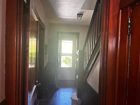 Charming 2-Bedroom, 1-Bath Home with Stunning Original Woodwork. This delightful home features beautiful original woodwork, elegant French doors, and a decorative tile fireplace. The spacious living and dining rooms seamlessly flow into each other, making it perfect for entertaining. The kitchen is fully equipped with a newer gas stove and refrigerator, and it leads to a mudroom that connects to the yard. Enjoy a large front porch that offers relaxing views of the street and a refreshing breeze. The expansive, open basement provides potential for additional living space once finished. Recent updates include the roof, windows, furnace, air conditioning, electrical box and walls and ceilings on first floor have been replastered within the last ten years. This home is ready for a new owner to move in, add personal touches, and create lasting memories.