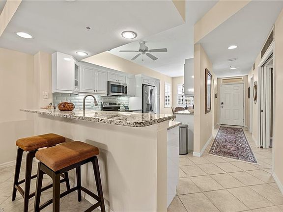 Now offering one of the most beautiful listings in Falling Waters! AMAZING VIEWS! This FIRST-FLOOR END-UNIT features 3 bedrooms and 2 full bathrooms at nearly 1600sqft of living space. This unit also comes with a garage! Lots of upgrades over the years including electric roll down hurricane protection, new kitchen countertops, appliances, newer AC (2023), New Hot water heater (2021), plantation shutters, frameless glass shower enclosure and much more. Unit is situated perfectly on the lake with a stunning view. This stylish condo is being offered TURNKEY FURNISHED with Tommy Bahama furniture. HOA fees include Wi-Fi, cable, water, all exterior maintenance, security, etc. Falling Waters is a highly sought-after resort-style community offering a wide range of amenities, including one of Naples most beautiful pools, tennis courts, bocce, and lush landscaping throughout the property. Located just a short drive from Naples’ renowned beaches, shopping, and dining, this condo is the perfect place to enjoy both relaxation and convenience. Don’t miss out on the opportunity to own this stunning first-floor 3 bedroom condo in one of Naples’ most sought-after communities!