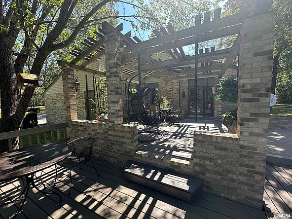 Step inside this thoughtfully designed 4 bedroom brick ranch with custom details throughout. Enjoy the warmth of the 2 wood fireplaces, elegant accent lighting, and built-in surround sound perfect for entertaining. Beautiful kitchen with granite countertops, cherry cabinets, breakfast bar, pantry and stainless steel appliances. The primary master bedroom suite is a retreat with 4 closets, double vanity, jet tub, sky lights and walk-in shower. A guest bedroom sits privately apart with it's own bathroom. There are 2 more bedrooms that share a Jack and Jill bathroom and one has a loft that makes a perfect place to read with the built in shelves. This home has everything you could want and more. There is a 2 car attached garage and a detached matching brick garage fully insulated all on 5 acres. Step outside to your backyard and enjoy the wildlife on a 3 level deck with pergola perfect for relaxing, the mature trees offer beauty and shade. Roof new in 2020, main furnace is 2 yrs old, smaller hvac unit and a tankless water heater are new. Well insulated and low utilities. Most furniture will be available for sale.