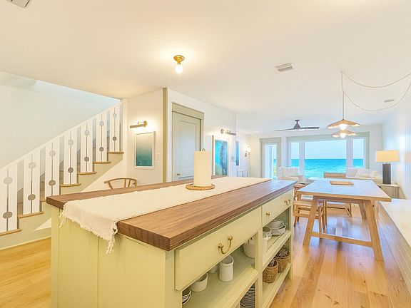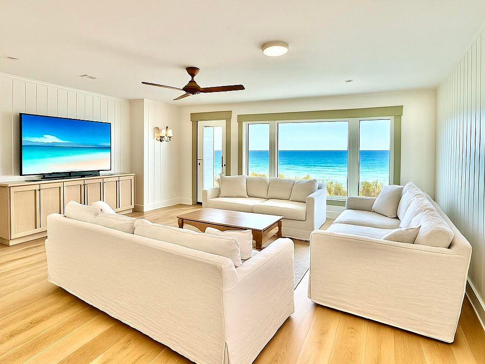 Enjoy the best and highest views on Scenic Highway 30A in this fully renovated two bedroom, two and a half bathroom condo at Sea Bluffs in Blue Mountain Beach. Sea Bluffs is nestled 65 ft above the beach and features private beach access for you and only 19 other condo units. When you enter the unit, you are greeted with gorgeous beach views through the large living room windows. The open concept plan boasts a coastal chic living room, dining room and kitchen on the main floor, in addition to a hallway bunk and a half bathroom. An inviting porch off the living room invites you to enjoy incredible sunrises and sunsets, not to mention access to a full day of playing at the beach. The second floor hosts the master suite and guest suite. Relaxation awaits in the beautiful, oversized master suite with ample sunlight from two sets of sliding doors that lead to the balcony. The master bathroom features a claw foot soaking tub, shower and double vanity complete with marble countertops and floors. The guest suite features a vaulted ceiling and generous space for guests to unwind. The guest bathroom includes an oversized shower with multiple shower heads. The condo can comfortably sleep 10 guests and has actual rental income that exceeds $100K annually. The condo was fully renovated in 2023 with custom cabinetry and solid white oak floors throughout the home, soapstone countertops in the kitchen, V groove and Shiplap walls, Moroccan Zeilege tile, furniture and fixtures from Arteriors, Rejuvenation, Visual Comfort, Pottery Barn, Anthropolgy, and more. Sea Bluffs has an agreement with La Dulce Vita for any beach chairs, umbrellas, bikes, kayaks and more.