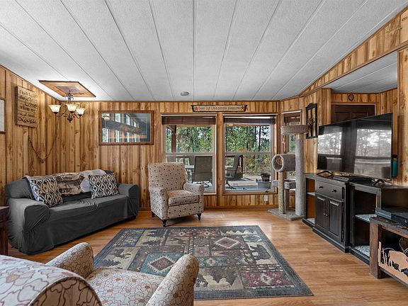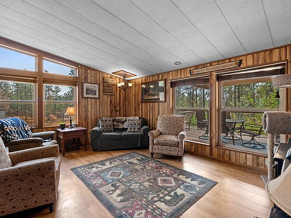 Open kitchen layoutFenced and cross-fenced farmlandCovered deckSeasonal pondsSurrounding pines