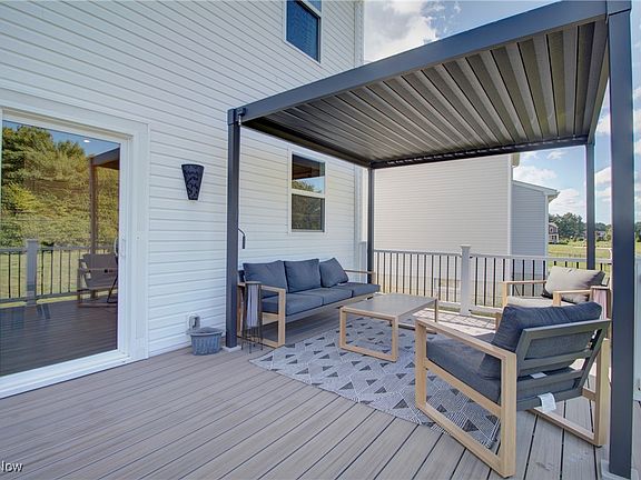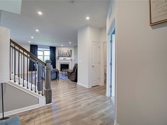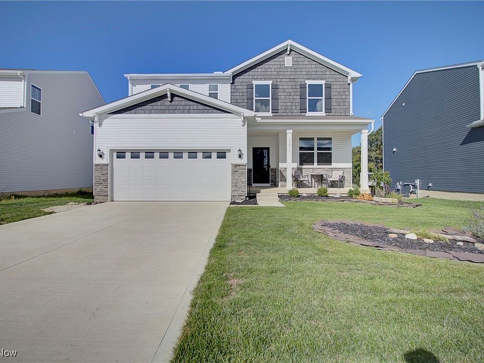 Located in Pulte's Emerald Woods Subdivision, this 4 bedroom, 2.5 bath colonial sits on a prime lot, overlooking green space, and at 2 years young, this home still smells brand new, but has some added touches beyond the builder final! With upgraded vinyl shake and stone on the front of the home. a nice front porch to relax on, & landscaping complete, the exterior is all set. The sellers added a lovely Trex deck with a gazebo and a lower level patio in 2024. The main level entry-way leads to a flex space with glass French doors and a generously sized great room with a gas burning fireplace that opens to the dining and kitchen area where you'll find granite countertops, stainless steel appliances, plenty of cabinet space and a pantry. The entry way to the garage has a built-in bench and place to hang your coats and the garage is larger in length than standard. The upstairs laundry is sure to please where there are 4 bedrooms and a nice loft space. One bedroom has new LVT flooring and the master bedroom has a feature wall and tray ceiling coupled with a walk-in closet and en-suite bath. Both baths up have double vanity sinks while the master has a walk-in, tiled shower. There is a half bath on the main level. This home features 9 foot ceilings throughout, including the basement, where finish work has been started with drywall, the rough-in for a full bath and upgraded large windows, bringing forth the natural lighting element. This community has a park and play area and is close to Strongsville, shopping and highway access. Move in before the snow flies and enjoy the fall scenery!