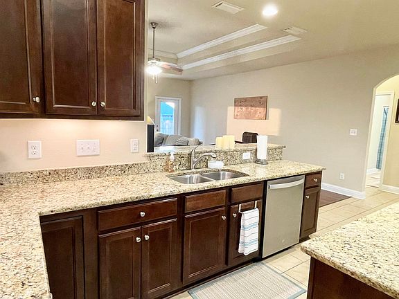 Don't miss the opportunity to be in the highly sought after neighborhood of Dunmore in Daphne. This 3BR Home + Office is situated on a corner lot with a fully fenced backyard. You'll love the spacious living area with beautiful Hardwood Floors and a Double Tray Ceiling. The large Kitchen features a Center Island, Granite Countertops and Stainless Appliances. There is a separate formal Dining Room and the Home Office/Study is located just off the foyer. It is a split Bedroom floor plan and all 3 Bedrooms are Spacious! The Master Suite has a Tray Ceiling and the ensuite includes a Double Vanity, Soaking Tub, Separate Shower and Large Walk-in Closet. The Back Patio is a highlight of the home and the perfect space for Outdoor Living! This home is in Excellent Condition and a Must See!
