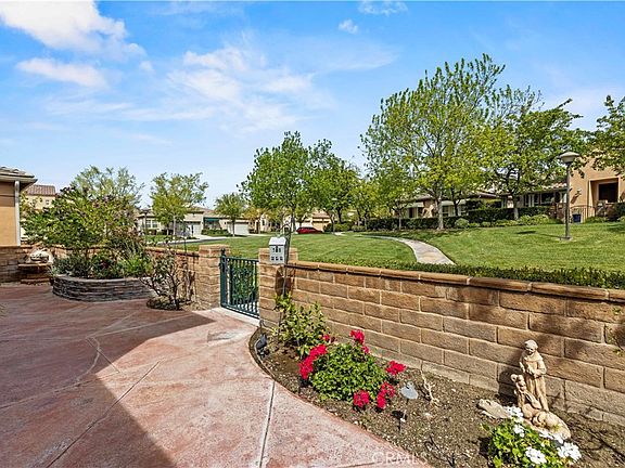 Delightful SINGLE STORY stand alone home in the prestigious Guard Gated Active Adult Belcaro Community of Valencia! Home to wonderful resort-like amenities, social programs, and pristine natural aesthetics to quietly enjoy. 23818 Laurel Oak is situated nicely facing one of the largest sweeping belts of grass that is a hallmark of its tract's name, The Greens, and is a short distance from the Community Clubhouse, palm tree studded pool complex, and Bocce Ball and Shuffleboard courts. The convenience of the single story is enhanced with tall ceilings and an open concept - the perfect size while feeling larger than the square footage listed - with a great room that includes the living room with fireplace, the kitchen and center island and a formal dining space. Several windows allow for bountiful natural light. Two bedrooms, including a spacious primary suite with a soaking tub, separate step in shower and large walk-in closet are complemented by the additional office/ den space with its own door to a private covered patio and water feature. Light laminate wood floors extend throughout most of the home, with carpeted bedrooms, and tiled surfaces in the kitchen, bathrooms, and laundry room. The kitchen boasts an amazing amount of counter and cabinet space, adorned with granite surfaces, so even if it's a "move down" you seek, storage won't be an issue. Two car attached garage with direct access, and wonderful enclosed courtyard with a covered porch and garden accents. Keeping active and social is a breeze with a community garden, basketball, tennis, and pickleball courts, not to mention direct access to Valencia's unique thirty plus miles of walking and biking trails linking communities. Make new friends at the Clubhouse that hosts social clubs and community programs, an art center, card room, and banquet room. Owning a home in Belcaro opens up a lifestyle just as much as a new home. Recently painted both inside and out, not to mention a new underlayment of roofing installed! This home has been lovingly maintained and is ready to welcome home its next owner. Come experience this amazing setting for yourself, schedule your appointment today!