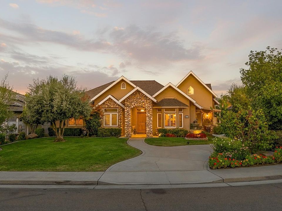 Just Listed! Kingsburg Custom Home with Owned Solar, Bonus Suite & Entertainer's BackyardThis beautifully maintained Kingsburg residence offers timeless curb appeal, modern efficiency, and inviting spaces both inside and out. From the stone-accented faade and manicured landscaping, tranquil fountain to the owned solar panels and oversized garage, every detail has been thoughtfully designed.Step inside to a warm and welcoming foyer leading to the formal dining room with tray ceiling, bay window, and plantation shutters. The gourmet kitchen features granite countertops, stainless appliances including refrigerator, abundant cabinetry, and bar seating. Multiple living and dining spaces provide flexibility for entertaining and everyday comfort. A private office with custom built-ins and a window seat is perfect for working from home.The primary suite is a true retreat, complete with a spacious bedroom, walk-in closet, and a luxurious bath featuring dual vanities, a soaking tub, and a large walk-in shower. Secondary bedrooms are generously sized with crown molding and ceiling fans. The home also includes a well-appointed guest bath and a functional laundry room with sink and storage.Outdoor living shines with expansive covered patios, ceiling fans, and a stone firepit lounge under a pergola ideal for family gatherings or quiet evenings. The backyard offers a large lawn, 2 storage sheds, and mature landscaping for privacy.A standout feature is the oversized garage with upstairs bonus suite, offering endless possibilities home gym, guest quarters, media room, or private office complete with its own full bathroom. The oversized garage provides plenty of room for vehicles, storage, or hobby space.Located in a highly desirable Kingsburg neighborhood near top-rated schools, shopping, dining, and parks, this home blends lifestyle and convenience. With solar efficiency and thoughtful upgrades, it's truly move-in ready. Schedule your showing today!
