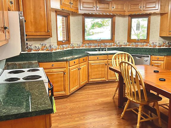 Finished basement areaRanch styleWrap around porchSecluded custom built brickWet weather creekMetal roofDining room