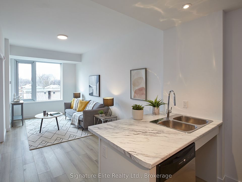 Modern, stylish, and ideally located - This bright 1-bedroom suite at 2382 Kingston Road offers comfort, convenience, and everyday lifestyle appeal in the heart of Birchcliffe-Cliffside. This boutique building is equipped with cutting-edge security systems and technology. Seize the opportunity to experience unparalleled comfort with a range of amenities, including smart security with keyless entry and suite controls accessible from your smartphone. Embrace a healthy lifestyle with our wellness area offering yoga, fitness, and other programs suitable for all fitness levels. Additional features include indoor and outdoor bicycle storage, individually dedicated suite HVAC systems, and exclusive access to a tenant-only garden and casual retreat. This unit features an open concept main living area with contemporary finishes throughout, bright living/dining combo, kitchen with breakfast bar, high-end countertops, and double sink. Full 3pc bath with walk-in shower, bedroom with double closet, and convenient ensuite laundry. This is a unit you don't want to miss! Explore the Cliffside Village shopping district, offering a comprehensive selection of grocers, drug stores, banks, boutiques, restaurants, and two TTC stops for your convenience.