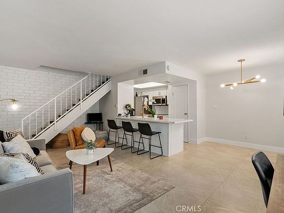 Located in the highly desirable community of Villa La Verne, this open concept layout features an abundance of natural light, creating a soft and airy feel. Newly upgraded kitchen with crisp white tones paired with brushed gold finish details, makes this space absolutely serene. Imagine creating your favorite dish in this stunning kitchen with newly upgraded stainless steel appliances including the refrigerator, farmhouse sink, quartz countertops, newer cabinetry and modern light fixtures. Ample storage with a pantry and additional storage closet. Newer garbage disposal and plumbing in kitchen. Staircase leads to two spacious bedrooms and an updated full bath. Larger bedroom offers a walk-in closet and built-in vanity that can be used as an office space. Ceiling fans in both bedrooms. Unit has one attached garage space with storage and one assigned tandem parking spot. Community includes 2 swimming pools and BBQ with picnic area. HOA includes water and trash. Laundry is shared among 4 units. Located near Las Flores Park, University of La Verne, and downtown La Verne. Easy access to the 210,57,60 and 10 freeways. FHA approved complex.
