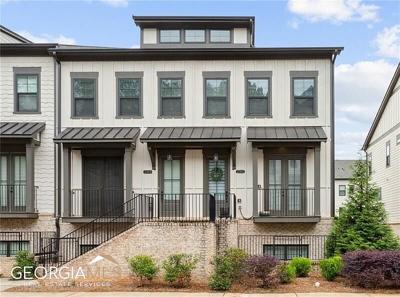 2020 built luxury, end unit townhome in sold out Dumont Place. Convenient to Toco Hills shopping, restaurants, and easy access to interstates. A private, gated community, this unit is across the street from the pool, cabana, grill area, and private walking trails with easy access to Mason Mill Park with Dog Park, Dekalb Tennis Center and "PATH' trails. This 3 level townhome has 3 bedrooms, each with ensuite full baths, plus a half bath on main. Light and bright open concept main level features a large living area with gas log fireplace, and 10-ft ceilings open to high end entertaining kitchen with oversized breakfast bar/island, gas cooktop, quartz countertops and spacious dining room with access to private deck. Upstairs is the private owner's retreat with custom walk-in closet, and oversized spa-like bath with double vanity and shower. A secondary bedroom, private bath and hall laundry are also located upstairs. The finished terrace level features a large guest retreat with private bath and rear-entry 2 car garage.
