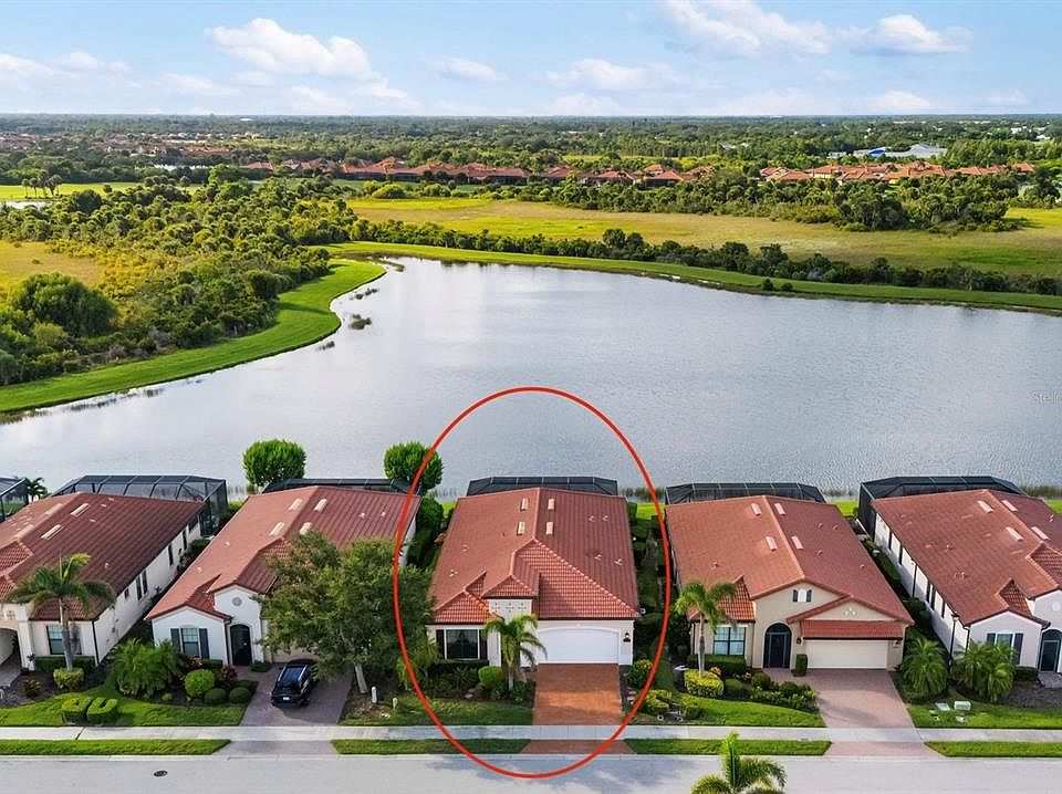 One or more photo(s) has been virtually staged. Welcome to 23823 Waverly Circle, an exquisite WCI-built Key Largo model, ideally positioned on a premier homesite showcasing panoramic water and preserve views. This elegant residence offers nearly 2,400 sq. ft. of open living space, featuring 3 spacious bedrooms each with its own private en suite plus an additional half bath, a versatile flex-room, a saltwater pool and spa, and a custom outdoor kitchen. From the moment you step inside, you'll be greeted by soaring 10-foot ceilings, 8-foot doors, crown molding, and elegant 12x24 porcelain tile throughout. The chef's kitchen is a dream, boasting upgraded solid-wood cabinetry with soft-close doors and drawers, quartz countertops, tile backsplash, under-cabinet lighting, stainless steel appliances, a large pantry, and direct access to a versatile flex space or formal dining area. The expansive great room is perfect for entertaining, highlighted by a dramatic tray ceiling and sweeping water views through hurricane-impact sliding glass doors. Step outside to your private backyard oasis, where a heated saltwater pool and spa, custom summer kitchen with built-in grill, vented hood, granite backsplash, and beverage fridge await. The clear-view screen ensures unobstructed lake vistas, while motorized Storm Smart Kevlar hurricane screens add peace of mind. The owner's suite is a luxurious retreat with dual vanities, granite countertops, walk-in shower, linen storage, and an oversized walk-in closet. Two additional guest suites offer privacy and comfort, each with its own en suite bathroom. A spacious laundry room with sink and cabinetry adds everyday convenience. This home is loaded with thoughtful upgrades, including impact-rated windows and doors, a built-in Sonos ceiling speaker system, elegant plantation shutters, upgraded lighting and ceiling fans, and a Bosch dishwasher (2023.) Improvements made in 2025 include: a new hot water heater, newly finished epoxy garage flooring, new pool filter, new ceiling fans in each guest bedroom and custom closet shelving in the kitchen. Every detail has been carefully considered in the design and finishes of this exceptional residence, perfectly situated on one of the community's most coveted homesites. This home is located in the Golf Village and comes complete with two golf memberships included in your HOA fees, which include greens fees and exclusive access to the 19th Hole Bar and Restaurant. Sarasota National offers an abundance of amenities that elevate your lifestyle, including: *Palm Club Restaurant & Bar *Tiki Bar with pool service (there is no mandatory minimum to be spent) *Heated resort-style pool with a dedicated lap section *Bocce, playground, pickleball, and tennis courts * A 7,000-square-foot fitness center with exercise classes *Dog park for your furry friends *Luxurious spa (additional charge) In addition, the Gordon Lewis-designed golf course is located in an Audubon International Certified Signature Sanctuary surrounded by wetlands and preserves. With its close proximity to beautiful area beaches, Historic Downtown Venice, and the evolving Wellen Park, this is an opportunity you don't want to miss. Experience the lifestyle you deserve at Sarasota National - the epitome of resort style living!