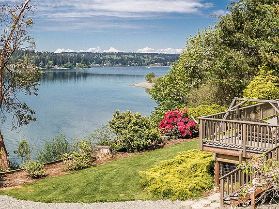 UNIQUE VASHON WATERFRONT HOME + ACREAGE. AMAZING VIEW & AWESOME SUNSETS of the ever changing PUGET SOUND from a wall of windows in this NW Contemporary 3 bedroom, 2 3/4 bath, Vaulted ceilings, Rock fireplace, & attached 2 car garage. Apr. 2600 finished sq. feet. Gated entry/ Asphalt drive. Beach Gazebo, fire pit, and ramp on Apr. 170 ft waterfront + tide lands. Apr. 3 acres of pasture, woods, garden & fruit trees. Out bldg. & Barn, with guest or studio space.