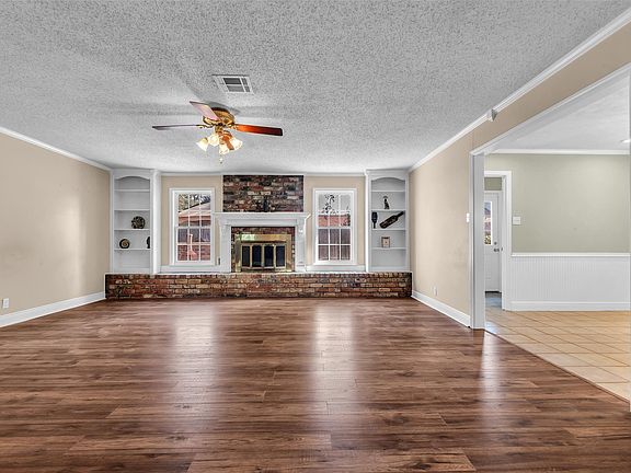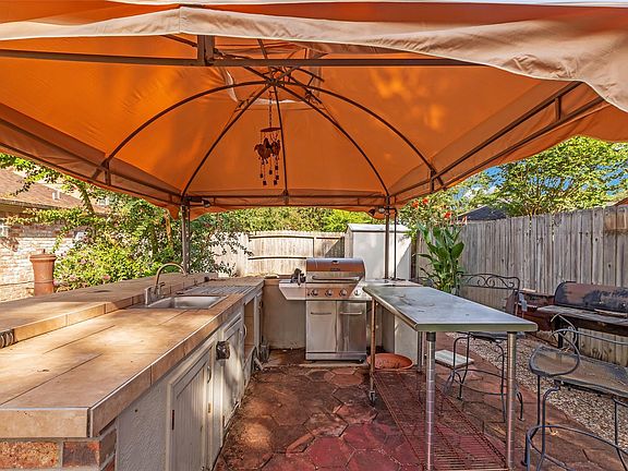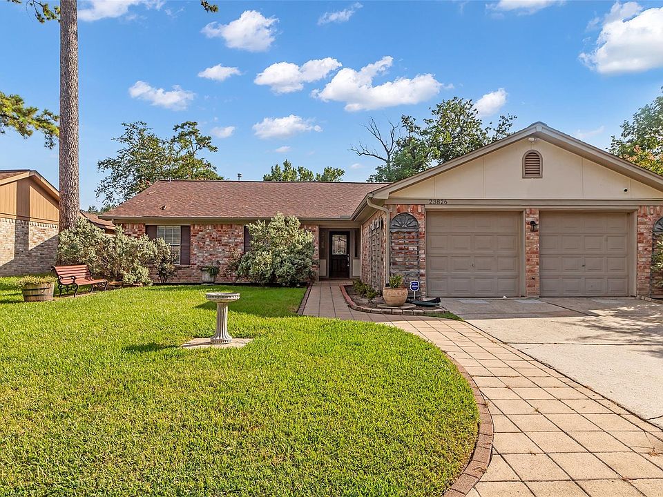 This lovely well maintained 1 story home offers a cozy place to call home for your family. The home has laminate wood flooring and tile in the kitchen & all the wet areas. NO Carpet! The oversized living room has a beautiful brick fireplace and plenty of windows for natural light. The primary bedroom features a nice size bath and has a large walk in closet with lots of storage. Secondary bedrooms offer ample closet space and easy access to the 2nd full bath. Kitchen has lots of custom cabinets and plenty of counterspace! Formal dining has French doors, easily used as an office or 4th bedroom. Attached garage has lots of cabinets, a work bench & a long driveway for extra parking. This home has a large backyard, extended patio and entertaining space. The OUTDOOR KITCHEN complete with a awning to keep you shaded while cooking! Perfect place to entertain all your friends and family with the holidays coming right around the corner! All close to 45, restaurants and shopping.