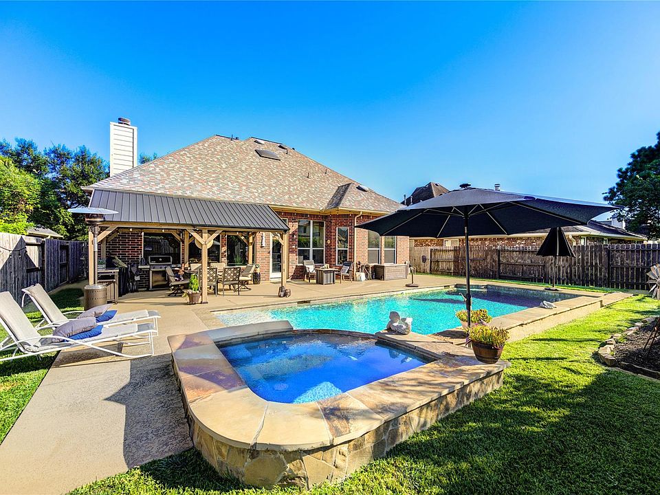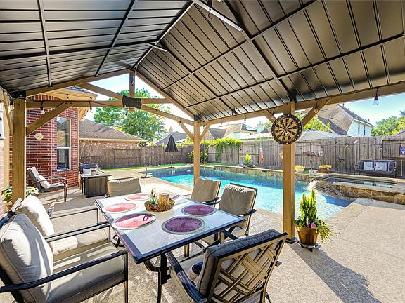 Don't miss it today! Beautiful home in sought-after Seven Meadows with heated POOL! Enjoy rich hardwood floors in the main living areas and stairs, a dramatic two-story entry, and oversized windows that fill the home with natural light. The island kitchen features granite countertops and opens to the family room with views of the sparkling pool and spa. The primary suite downstairs has updated wood floors and fresh paint. A private study with French doors is perfect for working from home, while upstairs you’ll find a spacious Gameroom and three secondary bedrooms. Outside, relax on the covered patio or take advantage of gas and electric connections for your future outdoor kitchen. ROOF (2023), Wood floors (2021). Walking/biking distance to Bonnie Holland Elementary. Easy access to 99 and Westpark Tollroad. Close to local shopping and dining.