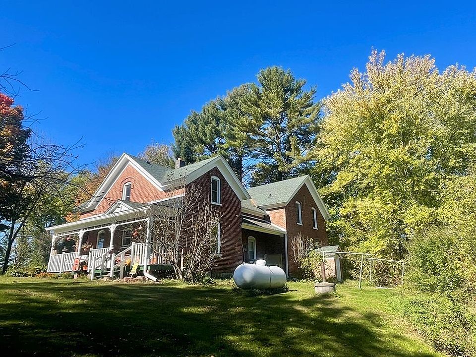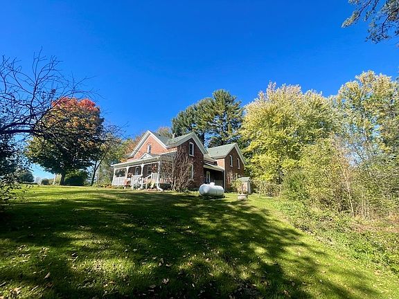 Beautiful, serene and private setting for this farm home on 38 acres! Lower level of the house has the old farm charm with 9-foot ceilings, original woodwork, updated full bath with walk in shower, extra-large living room, quaint dining room open to the large kitchen, 2 bedrooms, sitting area, maple hardwood floors, and main floor laundry. The upper level was renovated for a mother-in-law suite 17 years ago. Spacious and open kitchen, family room with two cubbies for books or toys, and nice dinette area. Two large bedrooms and full bath upstairs surrounding the large old farm hall area with original flooring and staircase. Many updates including complete house rewiring, upstairs re-insulated in walls and ceilings, newer gutters, most widows are newer, furnace, water heater, and the roof is only 9 years old. Outside you will find apple trees, blueberry bushes, black walnut trees, small creek, cherry trees, and a small pond stocked with Koi fish. The main 2 car garage has a full attic space for storage or a kids play room. The large storage garage is 14 years old and has a 30 x 30 s