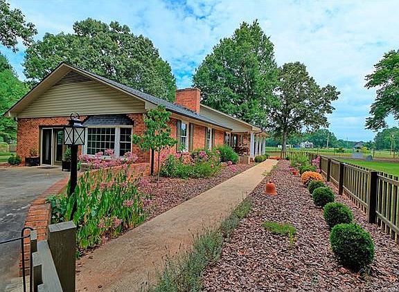Beautiful brick home on 5+ acres, meticulously maintained. Features hardwood/ceramic floors, large office area with fireplace, and a sunroom and deck on the rear. Outside features a brick building with kitchen, another building with storage and workshop (both buildings are insulated), and separate barn with 4 stalls and tractor shed. Home has two driveways, ample parking, landscaping, fruit trees, muscadine vines, fenced garden area with planters, and fenced pasture. Lovely home, must see!!