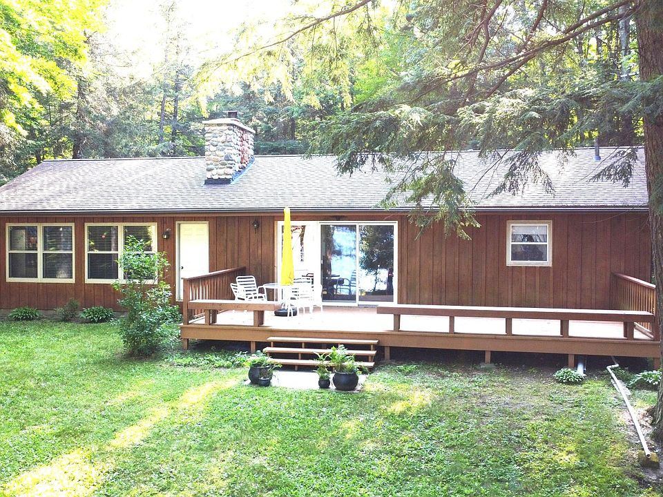 Experience serene lakefront living with this Roberts Lake property situated on 4.5 acres and 116 ft of frontage. This well maintained cabin features an open-concept kitchen, dining and living room, creating an inviting space for entertaining and everyday living. The home features a thoughtfully designed layout with two bedrooms and a full bathroom on one side, while the spacious primary bedroom is secluded on the opposite side for added privacy and with space to add a future bathroom. The attached garage offers convenience, the deck has generous outdoor living space while the lakeside shed provides additional storage. Nestled in a wooded lot, this property has privacy, stunning views and direct water access. Embrace the beauty of this lakefront location and make it your own! Dock included & most furnishings. The bulk of the acreage is located across the road allowing for separate lots to be created and sold. An extra 1.57 parcel off of Maple Heights Rd can be purchased separately.