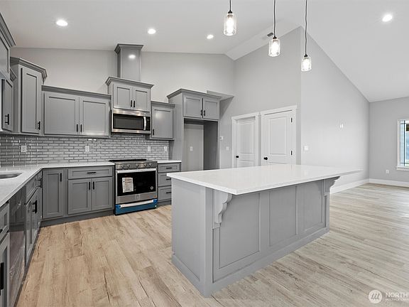 Brand-new 3-bedroom, 2-bath home offering just under 1,500 sq. ft. of modern living space! This turn-key property is move-in ready with LVP flooring throughout, matte black fixtures and hardware, and stylish pendant lighting in the kitchen. The kitchen is complete with quartz countertops, a full backsplash, and stainless steel appliances. The spacious primary suite features a walk-in closet, dual vanity, and a walk-in shower with sliding glass doors. Additional highlights include a laundry room with shelving, a 3-car garage, and a landscaped yard ready for your personal touch. Located in a growing neighborhood surrounded by new construction homes, this home delivers comfort, style, and convenience.