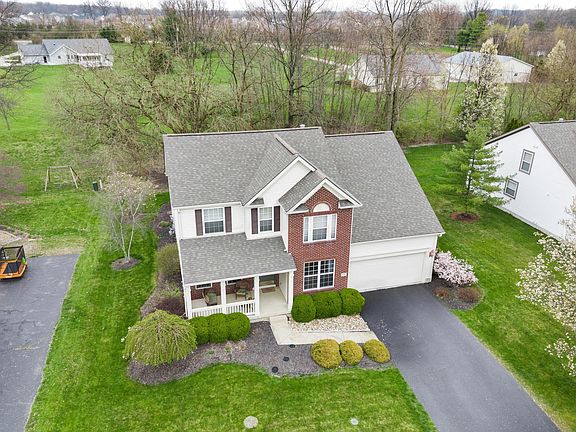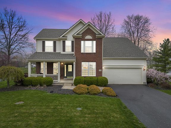 Welcome to this fantastic two story home in the Village at Alum Creek. Enter the foyer with Hardwood floors. Glass french doors lead to an office/den off the entry. Open floor plan with a vaulted ceiling great room with a gas fireplace. A formal dining room with waynes coating leads you to a custom kitchen with granite counter tops, stainless steel appliances and cherry cabinets. Hardwood floors in the kitchen and eating space. First floor primary suite with full bath w/ double sinks with granite counters, large tub , walk-in shower and large custom walk-in closet. 3 generous size bedrooms and a full hall bath on the 2nd level. Paver patio with a gazebo and a tree lined private backyard. 1231 sq ft in unfinished basement with tons of storage space.