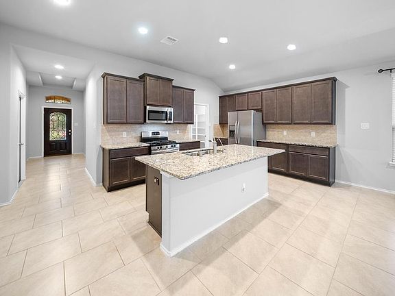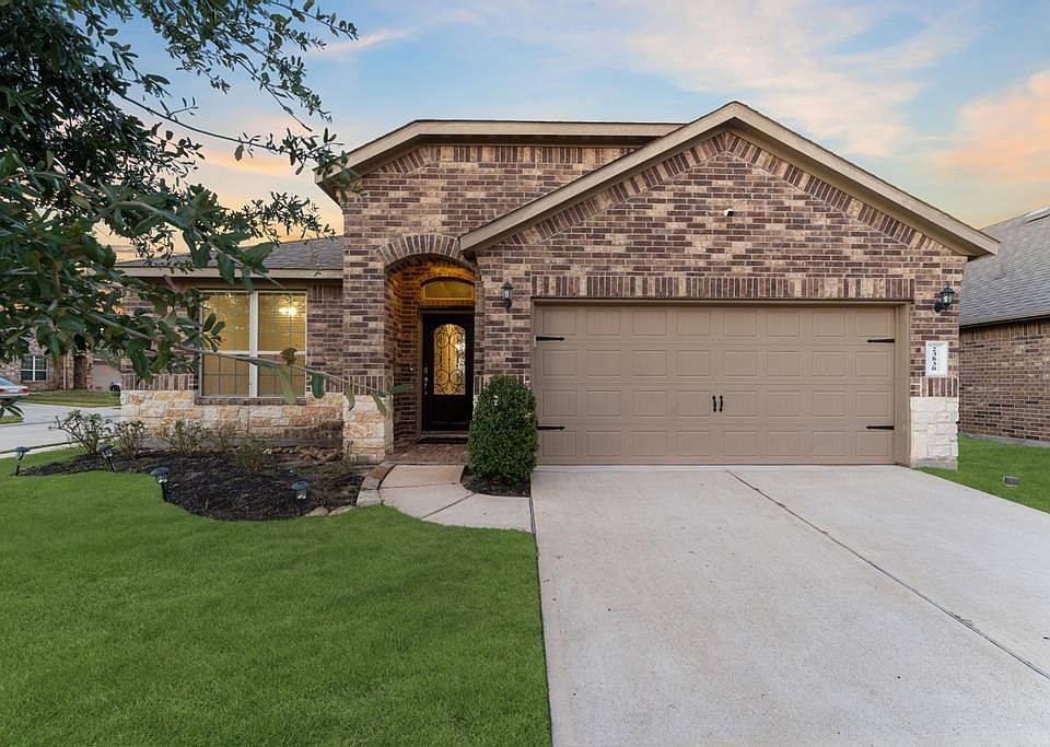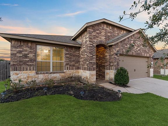 Stunning 1-story brick and stone home on a desirable corner cul-de-sac lot! This open layout features impressive high ceilings and a spacious family/kitchen area perfect for gatherings. The kitchen includes granite counters, a large island, stainless steel appliances, extensive cabinetry, and a walk-in pantry. The split floor plan offers 4 bedrooms and 3 full baths, including a private front guest suite. The primary suite showcases double vanities, a soaking tub, separate shower, and a walk-in closet with direct access to the utility room. Outside, enjoy a generous covered patio and a backyard for relaxing year-around. Community amenities include a pool, clubhouse, parks, trails, and more. With convenient access to 99, I-10, and 290, commuting and daily errands are a breeze. This one is a must-see!