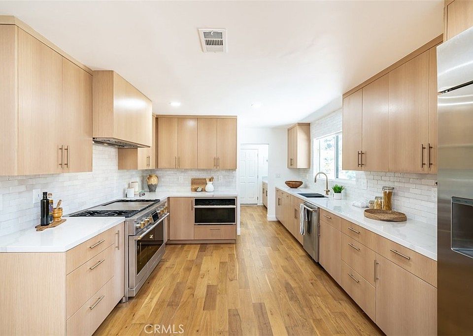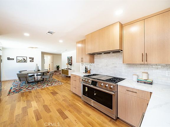 Step inside this elegant masterpiece, regarded as the best remodel in "The Country," and be captivated by its charm. With four bedrooms and three bathrooms, this home is designed for luxurious living. The renowned Walnut Valley Unified School District ensures a top-notch education for your family. The newly renovated kitchen is a chef's dream, featuring custom cabinets made of slab rift white oak with interior white birch PF. The addition of blum soft close door hinges and soft close drawer slides adds a touch of sophistication. The Calacatta Caramel quartz countertops, high-end monogram stainless steel appliances, farmhouse sink, and well-appointed pantry complete the chef-inspired space. Throughout the home, all-new engineered wood flooring creates a seamless flow, while recessed lighting illuminates the living areas with a warm and inviting ambiance. The bathrooms showcase Altair Stone Matte Porcelain and Iceberg Brushed Marble Tile, complemented by AllModern Dimmable Vanity Lights and Brizo plumbing fixtures for a spa-like experience. Unwind in the master suite, featuring a walk-in shower, a Woodbridge freestanding soaking acrylic tub, dual master sinks with a makeup vanity, and a spacious walk-in closet. Every detail is meticulously crafted for your comfort and luxury.