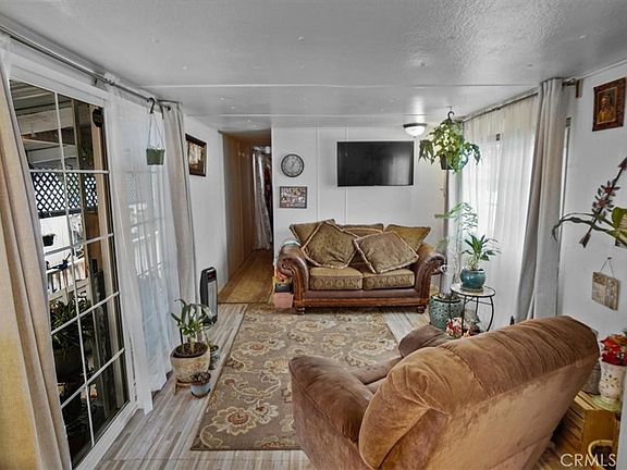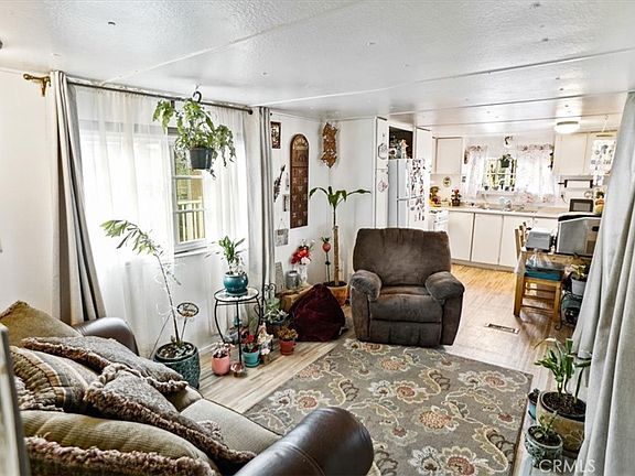 Beautiful two bedrooms and one bath single wide in Newhall Mobile Home Park! Low, low, low space rent! This property offers freshly painted outside and inside, a nice, large covered porch area, a shed in the back, 2 parking spots, upgraded dual pane windows, and a sliding glass door that will lead you to the living room with vinyl flooring, lots of natural light, an open kitchen with white cabinets, a dining area, two bedrooms, and one bathroom with an upgraded vanity and tub. The park offers a laundry room close by and a picnic area! Close to shopping, Main Street, and the Freeway!