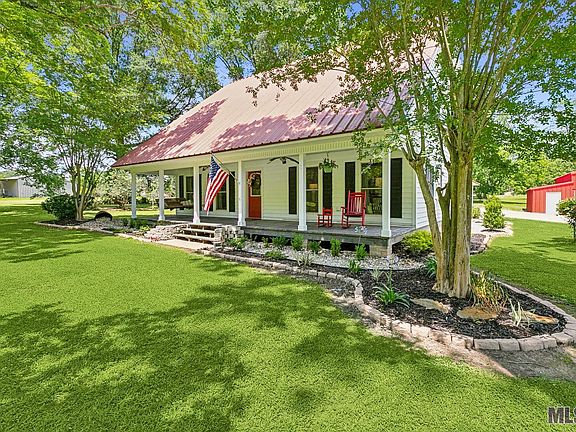 Beautiful country setting while still being close to town, this is the one you have been looking for! Tucked away at the end of quiet Portwood Ln, this updated 5 bedroom, 3.5 bath Acadian style home sits on 2.59 acres and has so much to offer! Enjoy the quiet and tranquility of the expansive front porch. Inside the home showcases many updates! Including fresh paint throughout, new light fixtures, and a completely remodeled primary bathroom. Kitchen features painted cabinets with all new hardware, granite countertops, stainless appliances, updated light fixtures, and a large bar overlooking the dining area. A cozy fireplace with painted brick really completes the dining space. Generous sized main bedroom with brand new floors and offers a completely remodeled en suite bathroom featuring new custom cabinets with makeup vanity, new shower/tub combo with oversized soaking tub, marble tile, new windows, and a spacious walk thru closet. All the bedrooms are a great size and offer plenty of closet space. Large laundry/mudroom was updated with new brick paver floors and custom cabinetry. You will appreciate the 2 BRAND NEW Geothermal HVAC Units when it comes to saving on your electric bill! On the outside of the home, new gutters have been installed that tie into underground drains. Metal roof recently had all gaskets, screws and boots replaced and comes with 20 year warranty. At the rear of the home, there is a triple car carport with a large storage room that has been sheet rocked and would make a great recreation room/flex space. Adding even more charm and offering additional storage to this wonderful property is a huge red barn/workshop that provides plenty of room for an RV, tractor, boat, etc. This property is a rare find and must be seen to be appreciated! Call to schedule your showing today!
