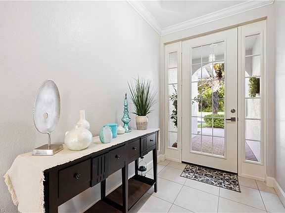 ALSO AVAILABLE FOR SEASONAL RENTAL See MLS#225064664 - Golf (6th hole tee box view) & Preserve views await you from this ground floor end unit with nothing but trees beyond your windows; including your side windows, no neighbor. Great location across from the swimming pool and mailboxes. Triple Sliders from Great Room lead to extended Lanai with tiled floor & peaceful views of the tee box at 6th hole. Improvements include: Freshly painted interior, new carpeting in all bedrooms, new interior door hardware & some new lighting. New high profile toilets. HVAC system, Hot Water Heater, Refrigerator, stove, microwave & dishwasher all new in 2022. Master Suite with huge walk in closet. Master Bath with dual vanities, walk in shower & Corner soaking tub. Guest Bed with en-suite Bathroom. Large closet in entryway for additional storage plus convenient powder room for visitors. Laundry room with sink & hanging space. Cabinets & Overhead Storage Racks in Garage. Other features include coffer ceilings & Crown molding. Enjoy The Colony's unique resort lifestyle with abundant amenities including your private membership to The Bay Club, or take the shuttle to the private beach park. 2 Canoe/Kayak parks, Butterfly Garden, Bocce Ball, Sailing club, Community & Fitness Centers, Pickleball Courts and one of the area's biggest Tennis programs. Convenient to shopping, entertainment, dining, airport & beaches.