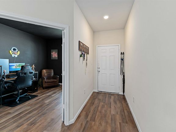 Welcome to your new home on Thistle Spud! This single-family home is ready to move-in and is in immaculate condition with appliances included, washer, dryer, fridge, microwave, gas burning stove and cameras. There is a perfect size island to prepare delicious meals, granite counter tops and plenty of cabinets in the kitchen. There is an office with double doors for everyone working from home now a days along with 3 Bed Rooms and 2 Bath Rooms. The Primary Bed Room has been transformed with LVP Flooring, a garden style bath tub for soaking, and a separate stand up shower. To add to this home the back yard is complete with a huge oversized concrete pad for an extended Patio. Also enjoy the community amenities such as the pool, club house house, courts, common areas, and much more. You don't want to miss this home, schedule your showing today!