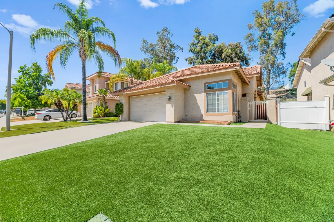 Serene backyardCharming courtyard entryGreenbelt bufferVinyl fencing for privacySliding glass doorsLow-maintenance artificial turf