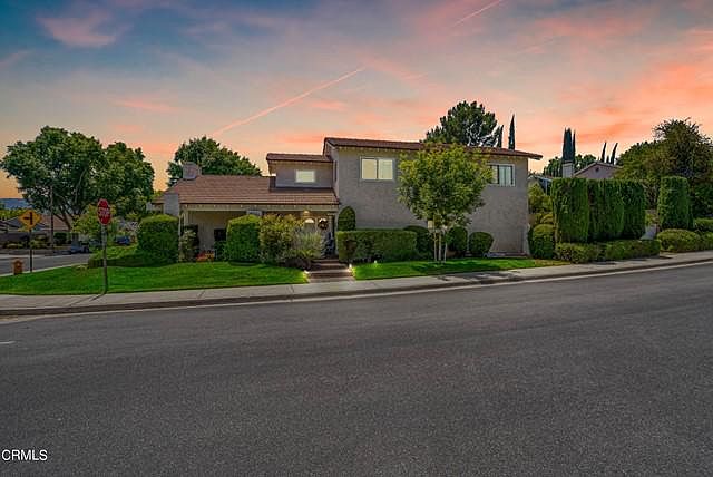 After 36 years of making some amazing memories, this property is ready for the next homeowner(s). ARE YOU READY TO ENTERTAIN YOUR FAMILY/GUESTS? Well, what are you waiting for? This home offers the following: 2 Master Bedrooms, 2 Fireplaces, 2 Car Garage with direct access, 3 Bedrooms Downstairs & 2 Bedrooms Upstairs. That's 5 total Bedrooms and 3 baths, over 2500 Sq. Ft. and nearly 8K sq. ft. corner lot. Ample of parking on the street or the driveway. An Atrium by the formal dining area. The kitchen has an electric stove, granite countertop, Recessed Lighting, a kitchen window with a view of the pool area, and a sliding door that leads to the backyard from the family room. Hardwood flooring, carpet, Recessed Lighting, smooth ceilings, Skylights in the family room. Upstairs there's a Jack & Jill bath with double sinks. The house is light and bright, with Plantation shutters and some blinds. Dual pane windows. A nice walk-in closet in the upstairs master bedroom. Some closet doors have mirrored doors (like the downstairs master bedroom and upstairs smaller bedroom). There's a balcony from the upstairs Master Bedroom to view the pool, mountains or simply get some fresh air. And most of the houses in this neighborhood, the laundry room is in the garage, however in this home the laundry room is conveniently located upstairs. The backyard offers a pool and a grassy area too!!! Imagine yourself walking through the double door entry that welcomes YOU and your Guest to this established neighborhood, that offers paseos, Valencia Hills HOA club house, pool, tennis court and kids play area. Don't miss it as this house also has solar!!!