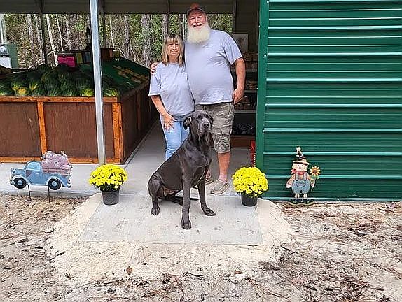 Faux Log Cabin in progress. 1200 square foot market, petting zoo, 2 car ports and shed.
