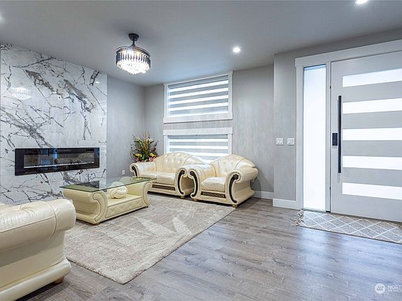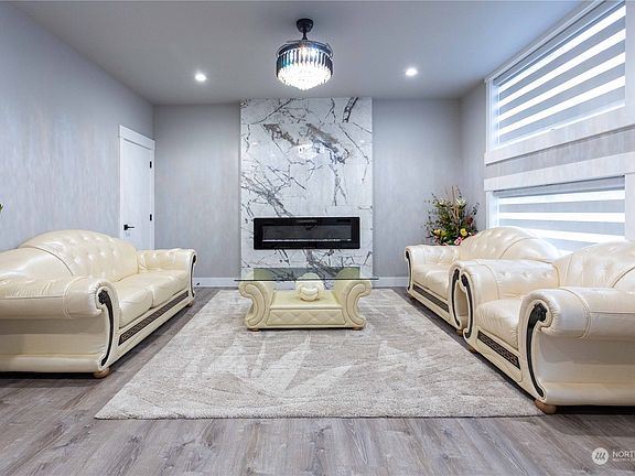 Modern 2022 home with a SPICE KITCHEN. 4 bedroom home with 2 living rooms 3 bathrooms. Front entry has a living room with a Fireplace. 2nd living room has floor to ceiling gas fireplace with double stacked Windows. Luxury Kitchen with stainless steel appliance's, quartz counter tops, marble backsplash, Lot of cabinets space and extra big Island. Spice kitchen has stove, sink, fridge, cabinets (all kitchen appliances stay). Lighted stairway leads to the main suite with fireplace and detailed lighted drop ceiling, 2 closets and Luxury Bathroom with tiled walk in shower with glass shower door. Double decks in the back, and front has 1 deck off Main suite. Laundry room with cabinets, sink & counter space. Spacious fully fenced back yard.