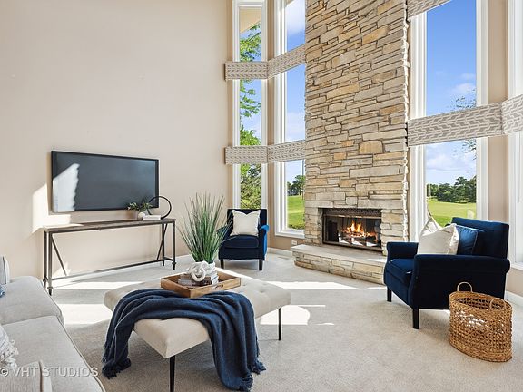 Welcome to this stunning 4-bedroom, 2.5-bathroom home located on one of the most beautiful, cul-de-sac lots in The Glen neighborhood of Stonebridge. As you enter, you'll be greeted by the two story, floor to ceiling windows in the living room overlooking the picturesque 3rd green of Stonebridge Country Club's golf course. The first floor has gorgeous hardwood floors that flow throughout the foyer and expansive eat-in kitchen that is big enough to accommodate large gatherings with family and friends. The kitchen is light and bright with plenty of cabinet and pantry space, and an island built for meal prep, homework help or late-night snacks. The kitchen flows directly into the lovely dining room that can accommodate a dinner party of 10 or more. Step into the living room and relax by the fireplace, or step outside to enjoy the tranquil water views from the deck or stamped concrete patio. The views of the golf course continue as you head into the first-floor primary bedroom ensuite with a large, jetted tub, separate shower, and walk-in closet. The second floor is home to 3 additional bedrooms and full bath with double bowl vanity and separate shower/toilet area - ideal for today's busy family. The finished basement provides additional living space, perfect for a home office, gym, or entertainment area and a utility area ideal for storage and/or a hobbyist. With an in-ground sprinkler system, brick/hardie board exterior, trex composite decking and an HOA that takes care of all lawn maintenance and snow removal, this home is perfect for those seeking to take back their weekends and enjoy maintenance-free living! Don't miss out on this rare opportunity to own a home in this desirable neighborhood with top-notch amenities and District 204 schools. Welcome Home!