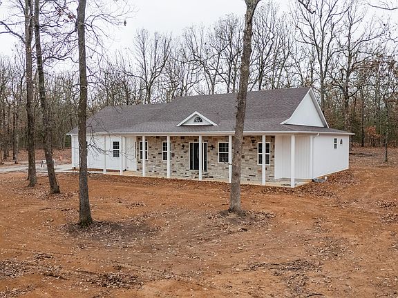 Gorgeous NEW CONSTRUCTION ! All one level split bedroom plan and open living design! Beautiful entry to this new country style home tucked in the woods ! Located off Highway 174 just a short zip to Republic & Springfield. Marionville schools. Home offers all on 1 level, 1996 sq ft m/l, 5 acres m/l ,3 bedrooms,(split bedroom plan), 2 full baths, office , gas log fireplace, stunning kitchen, large space for dining, 3 car attached garage, covered patio, plus old fashioned spacious front porch! You will love this kitchen having roomy island having seating area -granite counters- tons of countertop and cabinet space-pantry. Large master bedroom and walk in closet with master bath having walk in shower plus garden tub. Enjoy your morning coffee or summer cook outs with this scenic atmosphere having tress and wild life to watch.About 10 miles to Republic Wal Mart. Estimated completion time is January 16th 2026.