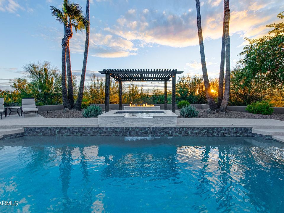 Welcome to your gorgeous Desert Oasis, entering through a private courtyard, this charming completely remodeled fully furnished vacation home will be the perfect escape . Nestled in a private gated community in North Scottsdale featuring a gorgeous backyard with pool, spa, putting green , 2 outdoor fireplaces and BBQ . 4 bedrooms, 3 baths , a flex room to use as an office / exercise room complete with Peloton bike & pull out queen sofa bed. Split floor plan , great room, a true gourmet Kitchen, updated technology with Sonos, Aqualink, all new AC 30 minutes from Sky Harbor , minutes from world class golfing, fantastic restaurants and hiking . Available beginning May 1, 2025 - Sept 30 , 20205 @$8500 Oct- Dec 2025 @ $10,000 Jan- April 2026 @ $15,000