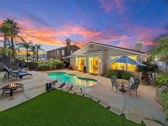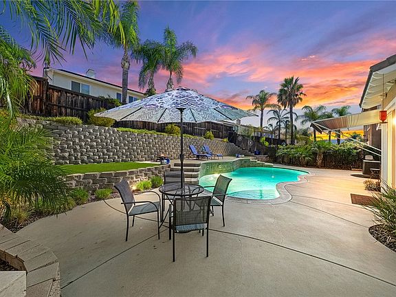 JUST LISTED! Welcome to your single-story pool home in the heart of Murrieta’s highly desirable Copper Canyon community! This beautifully maintained, move-in ready home offers a spacious open-concept layout with guest bedrooms on one side and a private primary suite on the other. Vinyl luxury plank flooring throughout, neutral paint. The upgraded kitchen features granite countertops, refreshed cabinetry, and a large island that opens to the family room filled with natural light—perfect for gatherings and everyday living. Step outside to your private backyard retreat complete with a sparkling pool, retractable patio cover for sun or shade, turf and concrete hardscape for low maintenance, and a built-in BBQ ideal for entertaining. The terraced slope provides extra privacy. The primary suite includes a large walk-in closet with custom built-ins and sliding door access to the backyard for morning coffee by the pool or a relaxing evening dip. Additional highlights:4 bedrooms, 2 bathrooms, a 3-car garage with epoxy floors and extra storage, Whole-house fan, Dog Run, Leased solar system (fully paid off and maintained by Sunrun) Separate solar for pool heating! Located within walking distance of Cole Canyon Elementary and close to parks, shopping, and restaurants! This home offers the perfect blend of comfort, privacy, and the Copper Canyon lifestyle. Did I mention NO HOA?? Schedule your private tour today!! Just in time for the Holidays!