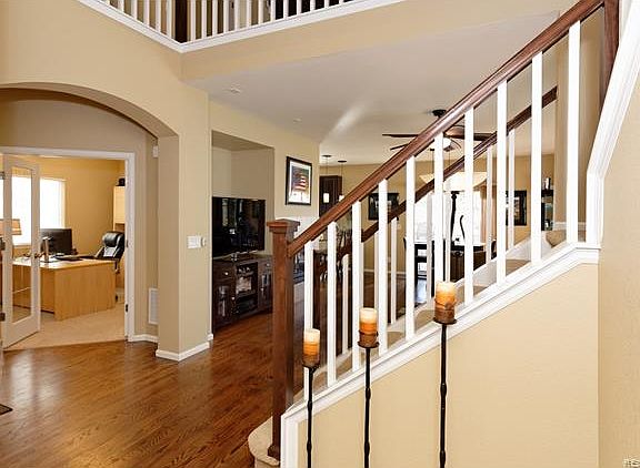 BEAUTIFULLY maintained 6 yr old Meritage home w/Green features. Cook-friendly kitchen w/gas range, SS appliances, new M/O & D/W, pantry, plenty of countertop space, and bar seating. Gorgeous wood floors on main level & upstairs landing & loft. Main floor study. Gas fireplace warms great room & dining. 3 bedrooms + large open loft upstairs. Dramatic staircase to upper floor. Secluded Master has additional retreat room and 5-piece bath. Convenient 2nd floor laundry room w/cabinetry & shelving. All closets have built-ins. Finished bsmt with open rec room, kitchenette, large bedroom, & 3/4 bath. NEW on-demand water heater. Gorgeous landscaping including many trees and low-maintenance synthetic turf. Back deck plumbed w/gas for outdoor kitchen/fire pit. Garage drywalled w/sealed floor. Large open culdesac with plenty of guest parking provides space between home fronts. No neighbors behind - Home overlooks Holly Hills Way to outstanding views of Black Bear Golf Course and Paperflower Park.