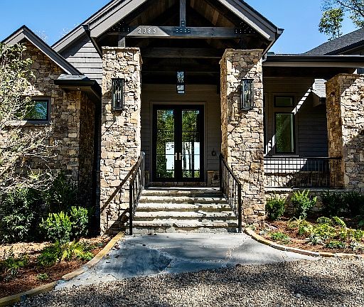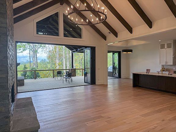 Nestled within the gates of Wildcat Cliffs Country Club but part of Wildcat Ridge Estates, this exquisite new construction estate home by Campagna Homes offers the pinnacle of luxury mountain living—without the requirement of club membership. Thoughtfully designed with a total of 4,298 heated sq ft and 7,514 total covered sq ft, AND ELEVATOR, this high-end residence blends timeless craftsmanship with refined modern comfort. The open-concept floor plan features a seamless flow between the gorgeously beamed cathedral ceiling living room into the dining area and gourmet kitchen, complete with top-of-the-line Thermador appliances and dry bar with ice maker—ideal for entertaining. Enjoy outdoor living on expansive porches both upstairs and downstairs, perfect for taking in the peaceful mountain views, breezes and serene natural surroundings. Two wood-burning fireplaces with gas starters, one in the living room and one on the covered porch, add warmth and ambiance on chilly mountain evenings. Telescoping Pella glass doors lead from the living area to the expansive covered porch with fireplace and built-in barbecue for easy indoor/outdoor entertaining. The main level includes a split plan for privacy with a spacious primary suite with a luxurious bath on the west end and a private guest suite with a full bath on the east end. Additional highlights of this exceptional property with views include a full main level laundry room with farmhouse sink and a secondary laundry area downstairs and a finished lower level featuring a large and open family room, game room, wine bar, a generous bedroom with ensuite bath plus an additional guest room or study with another full bath. This home will easily and comfortably accommodate a large family! There is plenty of space outside on the gentle lot for furry friends to frolic, gigantic gardens to grow and for toasting s'mores and stargazing around the outdoor fire pit. The oversized garage includes a dedicated golf cart bay along with a 576 sq ft unfinished area above that could be finished to use as a bunk room, home gym, office or additional storage space. Located within the gates of Wildcat Cliffs CC but part of Wildcat Ridge Estates so club membership is NOT required but the club is fabulous and offers an exceptional lifestyle with a premier golf course, croquet facilities, and a vibrant, welcoming membership. Architectural plans, renderings and finishes are subject to changes prior to construction completion.