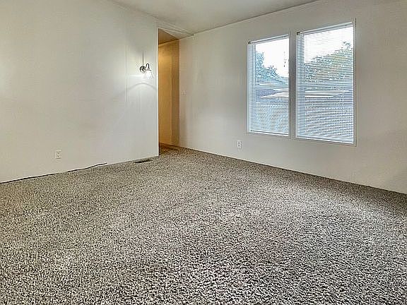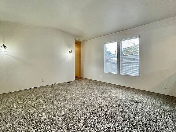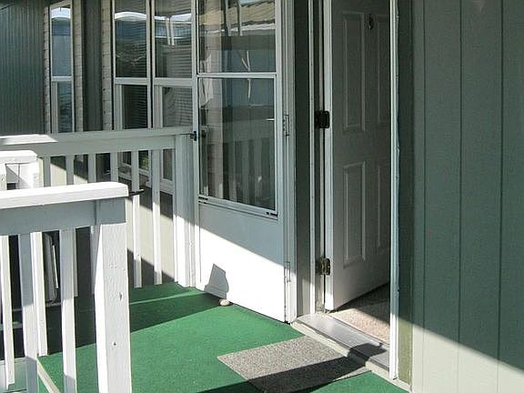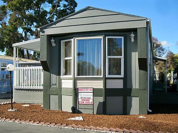 This beautiful cozy two-bedroom one bath home is nestled in a well-maintained quiet 55+ park. It is move-in ready. The carpet is new from 2021, the furnace and the thermostat and heat pump were replaced in 2024. Vinyl plank flooring was installed in the bathroom and kitchen / dining areas. Plenty of kitchen hardwood cabinets, new appliances including the washer & dryer and a microwave will stay with the home. The bathroom has spacious linen storage space and a vanity with shelves and drawers. Outside offers a large rebuilt front deck to enjoy the afternoon breeze, parking for two vehicles plus a large cement patio area that's under cover. There is grassy space for your four legged furry family member plus area's for all you green thumbers for a garden and maybe even a fruit tree or two. Low space rent that includes sewer, trash & water plus a clubhouse for residents. Call for an appointment to view, be prepared to make an offer because where this home is located, it's close to shopping, restaurants, entertainment and easy freeway access.