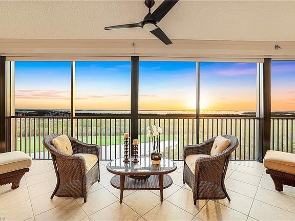 Enjoy your evening cocktail with breathtaking sunset views overlooking Estero Bay and The Gulf of Mexico beyond. On a clear morning have your first cup of coffee from the lanai of this 10th-floor residence in Florencia at the Colony with views of the emerald green fairways of The Colony Golf course. Offering a unique layout that makes this home feel like an end residence, enter from your private elevator and immediately enjoy the stunning views. Offered furnished with a few exceptions! With additional space for guests or working from home, the guest space is separated from the primary suite where the first thing you see every morning is the spectacular view! An expansive lanai offers plenty of room for relaxing or entertaining and electric shutters provide shade and storm protection. Large laundry room with sink and storage. Your daily workout is a few flights down and a community room and movie theater offer a respite from the occasional afternoon rain! Take a swim in the resort-style pool, and offer overflow guests access to two guest suites. Leave for the summer, knowing you are secure with onsite management. Residents of The Colony enjoy a 34-acre beach park, tennis, pickleball, canoe, kayak, and a community fitness center, as well as The Bay Club, overlooking Estero Bay, offering an exceptional dining experience. The gated community of Pelican Landing including the Colony, has two golf clubs offering optional memberships (check for availability). Close to dining, entertainment, and a short 30-minute drive to SWFL International Airport.