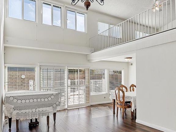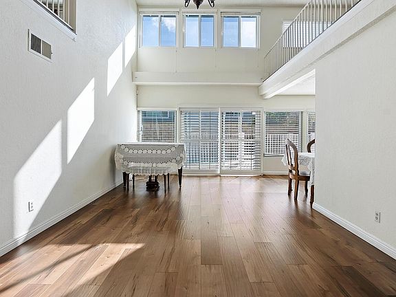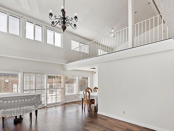 Awesome floor plan. The entry opens to the living room with high vaulted ceilings. There is plenty of natural sun light coming though the clear light windows and sliding glass door that leads to the maintenance free back yard. This bright and light home offers 2, 662 square feet of living space but it just plain feels so much bigger. The first level has 3 bedrooms, 2 full bathrooms with 2 additional bedrooms and a full bathroom on the second level. 5 bedrooms 3 bathrooms total! With a little bit of updating your clients can make this beautiful house their home. The second level has an fun and spacious bonus/game room that overlooks the living room. This home is perfect for entertaining family and friends because it has plenty of room for the both friends and family. The back yard has a pool and spa perfect for those summer nights in Valencia. A little bit of imagination and TLC can go a long way. Solar installed and new wood floor