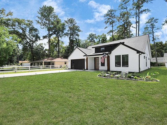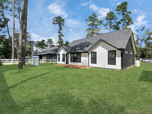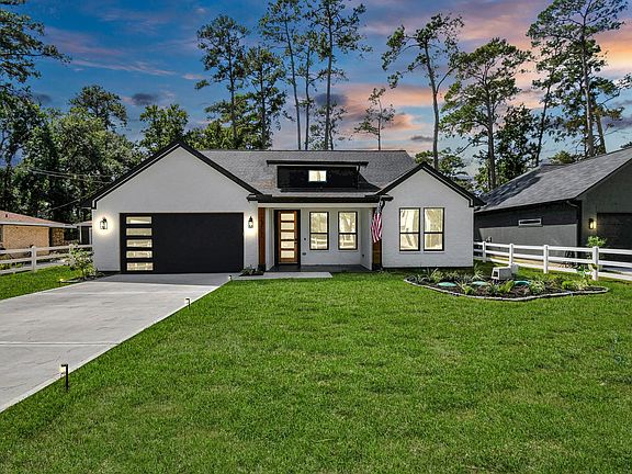Unveiling a truly exquisite residence, this brand-new 2025 modern ranch-style home presents a striking black and white aesthetic on a premium 1/3-acre lot. This one-story masterpiece features a thoughtfully designed, open and split-concept floor plan with 3-4 bedrooms, 2.5 baths, a dedicated office, and a bonus game room upstairs. The grand living area is a showstopper, anchored by a sleek electric fireplace and accentuated by soaring vaulted ceilings with natural birch beams and columns—creating a magnificent space for both relaxing and entertaining. The gourmet kitchen is a culinary dream, where pristine quartz countertops and a massive island provide the perfect workspace. A walk-in pantry offers a haven for all your storage needs. Seamless luxury vinyl plank flooring flows throughout the entire home, providing a modern and elegant foundation. Located just 10 miles from major employers like Exxon, Hewlett-Packard Enterprise, and St. Luke's Health Hospital in the Springwoods Plaza.