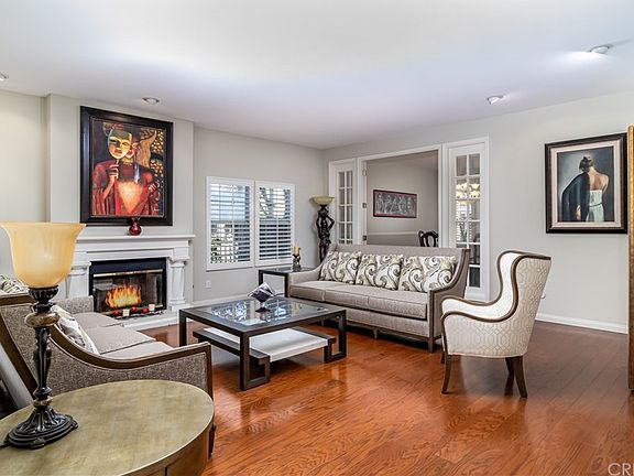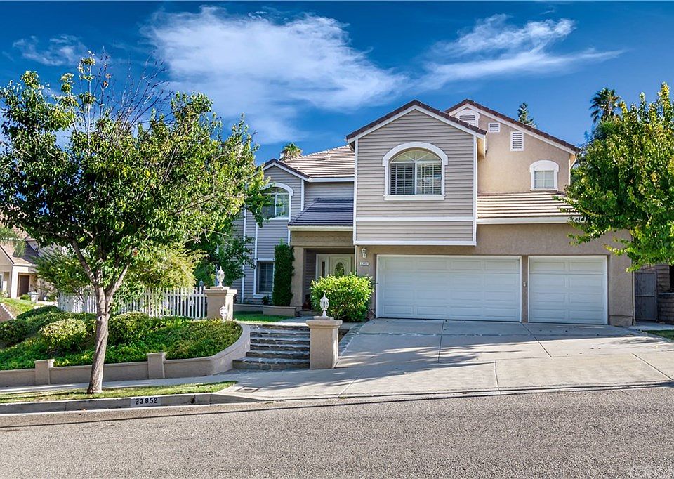 Situated high on a knoll in the desirable Estate Collection with well-manicured landscaping and white picket fence, this 5 bed, 5 bath home will impress you from the start. Step into the large foyer with winding staircase and 2-story ceilings. Step into the open living room featuring an elegant fireplace, wood floors, recessed lighting and French doors that lead to the formal dining room, showcasing chair railings and sliding glass doors with plantation shutters leading out to the large, well landscaped backyard. The chef's kitchen is spacious with granite countertops, stainless steel appliances, including double wall oven, large center island and charming breakfast nook. The kitchen opens to the bright family room with 2nd fireplace and 2nd set of sliding glass doors with plantation shutters leading to the covered patio. The first level boasts 1 bedroom with full bath. The powder bath has been redone with new vanity, counter, sink and mirror. There are rich hardwood floors and recessed lighting throughout. The grand staircase leads to the 2nd level with 4 more bedrooms, including a master suite featuring 3rd fireplace, double-closets and master bath with soaking tub, separate shower, double sinks and dedicated vanity area. The beautifully landscaped backyard features a concrete walkway surrounded by raised flower beds, a built-in barbeque area, and large, partially covered patio. The home also includes an attached 3 car garage and dedicated laundry area.