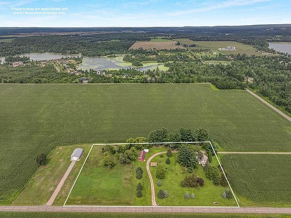 Discover the perfect blend of country charm and convenience with this inviting farmhouse on 4 acres just outside of Chetek. Tucked back from the road and framed by mature trees and country fields, the setting offers privacy while still being minutes from town and the Chetek Chain of Lakes. The main floor provides everyday comfort with a spacious bedroom and walk-in closet, laundry off the garage entry, and a cozy 4-season sunroom. Upstairs, three bedrooms and a half-bath add flexible living space. Outside, you’ll find multiple outbuildings ready for hobbies, storage, or creative uses: a 52'x20' garage, 18'x14' workshop, 12'x20' playhouse, 38'x20' steel shed, and a garden shed. With its timeless character, functional layout, and versatile amenities, this property invites you to embrace both relaxation and opportunity in a peaceful country setting.