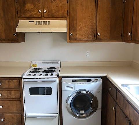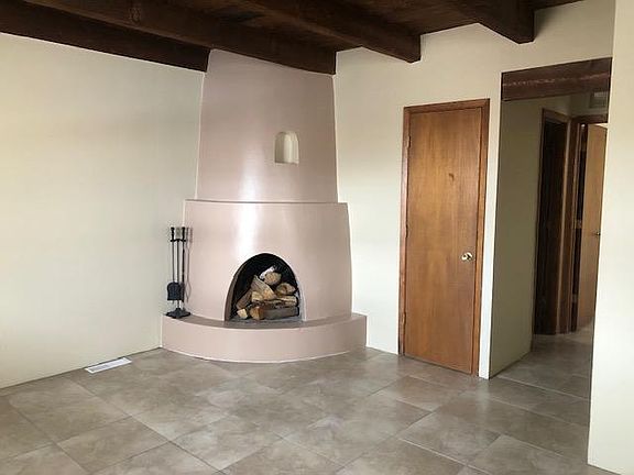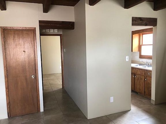 This is a clean, quiet, unfurnished 1 bedroom/1 bath apartment located Santa Fe. It is an end unit in a one-story 4-plex. Quiet, residential neighborhood near train station, bike trail, shopping, parks and grocery. Easy commute to Los Alamos. Kitchen includes electric stove, refrigerator/freezer and space-saving Haier washer/dryer combo unit. Living/dining area includes a wood-burning kiva fireplace and rustic wood ceilings. Bathroom has a single sink, bathtub/shower and plenty of cabinet space. Bedroom has a large walk-in closet with extra built in shelves. There are tile floors throughout. This unit is freshly painted and well-maintained. It receives plenty of natural light and has peaceful minimalist vibes.