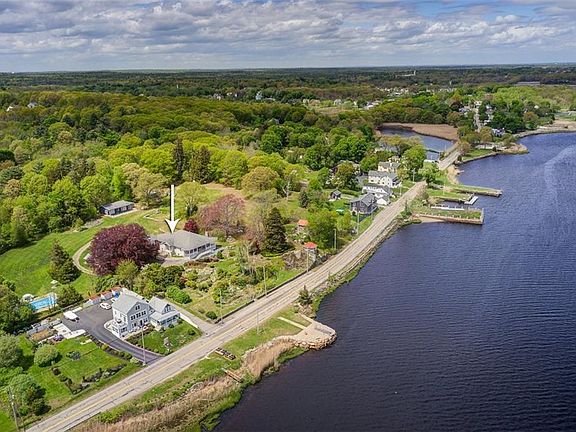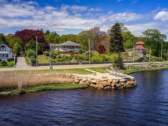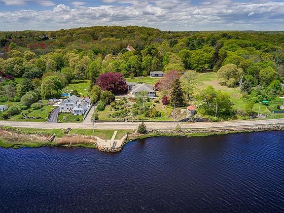 Perched on 3.8 acres of direct waterfront, this magnificent home blends privacy, natural beauty and comfort! Soaring ceilings, panoramic vistas and open-concept layout radiate warmth and sophistication. This retreat has added beauty of a historic stone gazebo with river views as well! Inground pool, four garage spaces for the car collector and stunning copper beech trees lining the property are just a few of the many surprises found truly making this a hidden gem! Direct river access to your private pier with deep water dock further sets this property apart from most! Swim, fish, boat or cruise to waterfront dining is awaiting the new Buyers! The acreage lends itself to accommodate large family gatherings, class reunions or even wedding venues!! Though it feels worlds away, this property offers quick access to Boston via the newly extended commuter rail, Providence and Cape Cod ... a rare mix of peaceful, WATERFRONT seclusion and metropolitan living!