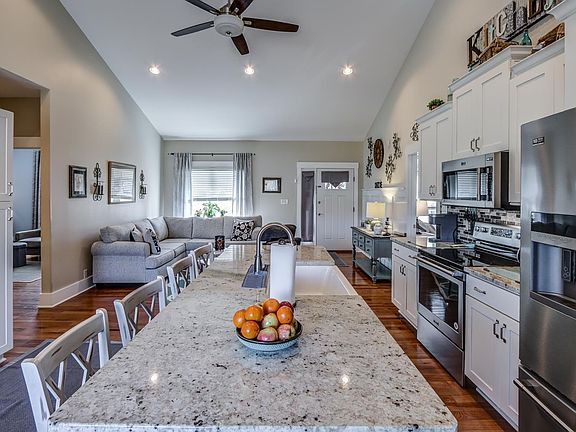 Well-maintained one-story home built in 2017 offering 2,487 finished square feet, including a full finished basement. This 3-bedroom, 2.5-bath home features hardwood floors throughout the main level and engineered hardwood flooring(purposed for high traffic areas) on the lower level. Kitchen has ample cabinet and counter space, light and airy breakfast nook. The spacious primary bedroom includes a tray ceiling, walk-in closet and private bath. Additional highlights include a main-level laundry room, screened porch, and covered front porch for outdoor enjoyment. Situated on 3.3 level acres, the property offers a paved driveway, fenced backyard area ideal for pets, a detached two-car carport, and two storage buildings (5x6). Plenty of usable outdoor space with room to enjoy, garden, or expand. A great combination of modern construction, functional layout, and peaceful acreage living.