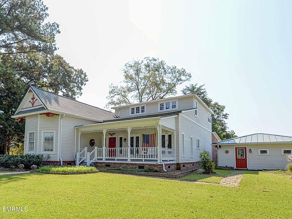 This beautifully preserved and thoughtfully updated historic farmstead offers the perfect blend of Southern charm, modern amenities, and endless recreational possibilities, perfect for a homestead, equestrian retreat or private country escape. Set on approximately 95.5 acres of gently rolling terrain, the main farmhouse features 5 bedrooms and 4 full bathrooms, including a luxurious main-level primary suite. Two inviting living areas boast exquisite wood ceilings--one with a cozy gas fireplace and the other with classic brick flooring. The spacious kitchen includes abundant cabinetry, generous prep space, and a walk-in pantry, while the elegant dining room is framed by leaded glass windows. Additional highlights include a home office, oversized laundry room, an auxiliary laundry facility, two-car garage, spacious covered front porch, and a covered back porch with Trex decking overlooking serene pastureland and pond. A separate 1-bedroom, 1-bathroom guest cabin includes a private dock and fire pit overlooking an additional pond. The property is loaded with amenities: a saltwater pool and cabana; a 7-stall horse barn with loft, two tack rooms and washroom/8th stall; a massive equipment barn; fenced and cross-fenced pastures with automatic watering troughs; greenhouse; mature fruit trees, shrubs, and vines; and majestic shade trees along with a pecan orchard and black walnut trees. Three ponds, a windmill-powered well, two additional wells, and community water connections provide robust water access. Recent updates include architectural shingle roofing (2022), polyurea roofing (2024), and freshly painted red oak fencing. There's abundant road frontage, and the acreage spans both sides of the road for exceptional privacy and versatility. This extraordinary property offers an unparalleled lifestyle. Whether you're looking to farm, entertain, raise animals, or simply connect with nature, this estate delivers timeless beauty and peace and tranquility for the soul. This is truly a once-in-a-lifetime legacy property- don't miss this rare opportunity to make this homestead yours! And please enjoy the video tour!