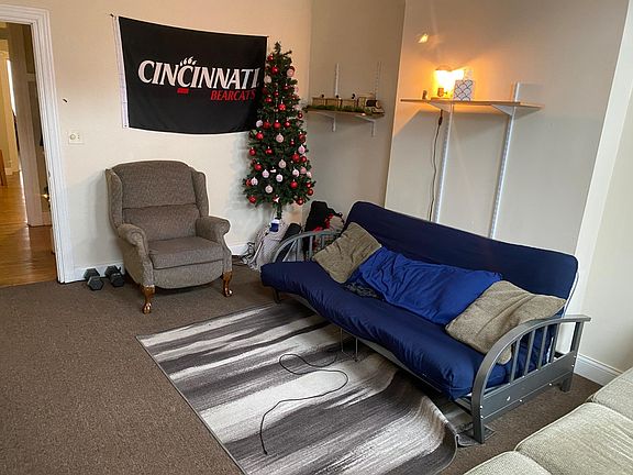 4 bed, 1 bath apartment with a large living room (option to make the living room a 4th bedroom) and dining room! Walking distance to UC, bars, restaurants, etc. The bedrooms aren't pictured for the tenants privacy, but they are available upon request. Each bedroom is about the same size as the living room. There is a large basement with free laundry and plenty of room for storage. The living room can also be rented out as a 4th bedroom if desired. Additionally, there is dedicated off-street parking available behind the building. Feel free to reach out with any questions or if you would like to schedule a tour!